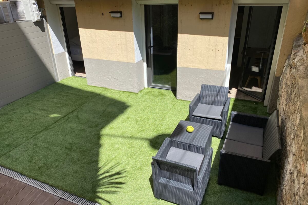 Ce bel appartement climatisé offre un cadre confortable et apaisant à quelques minutes du centre-ville de Cannes. Sa pièce de vie lumineuse et sa chambre spacieuse et bien aménagée ouvrent sur un jardin privatif ensoleillé.