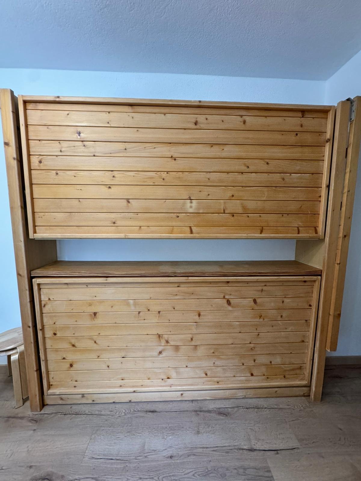 Capacité : 4 personnes. Un canapé-lit double et deux lits superposés escamotables. Literie de qualité.